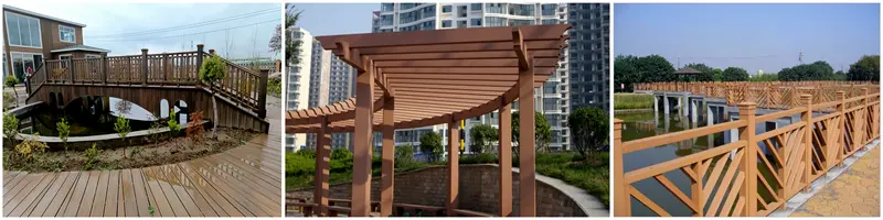 PE plastikoa (HDPE) + % 60-70 egurra/banbu hautsa + UV-erresistentzia higadura-erresistentearen geruza + irristagaitzaren aurkako testura moldea |