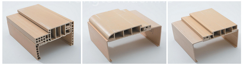 PE plastikoa + % 10-15 beira-zuntz indartua + % 50-60 egur hautsa + zahartzearen aurkako geruza koextrusionatua + egitura sendotua |